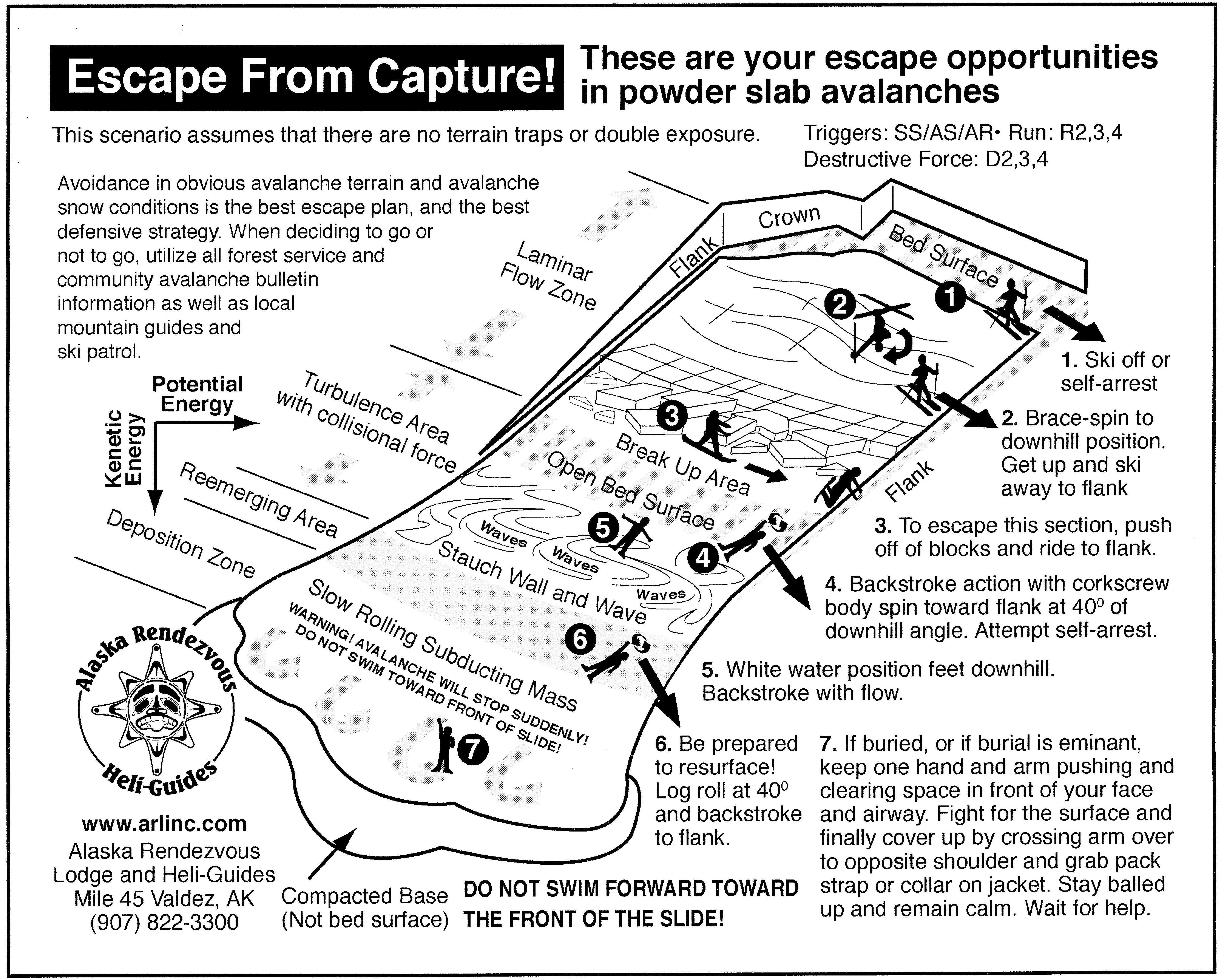 For the 2008 International Snow Science Workshop (ISSW), three snow science and avalanche professionals, Karl Birkeland, Perry Bartelt, and the late Theo Meiners (who tragically passed at the 2012 ISSW event), collaborated on a paper that centered on the idea that there are exit strategies that skiers and riders can employ that may help fight the deadly pull of a slide. From a fast ski escape to back-stroke swimming and log rolling, there are numerous anecdotal stories that highlight how fighting for your life in an avalanche might be worth it.