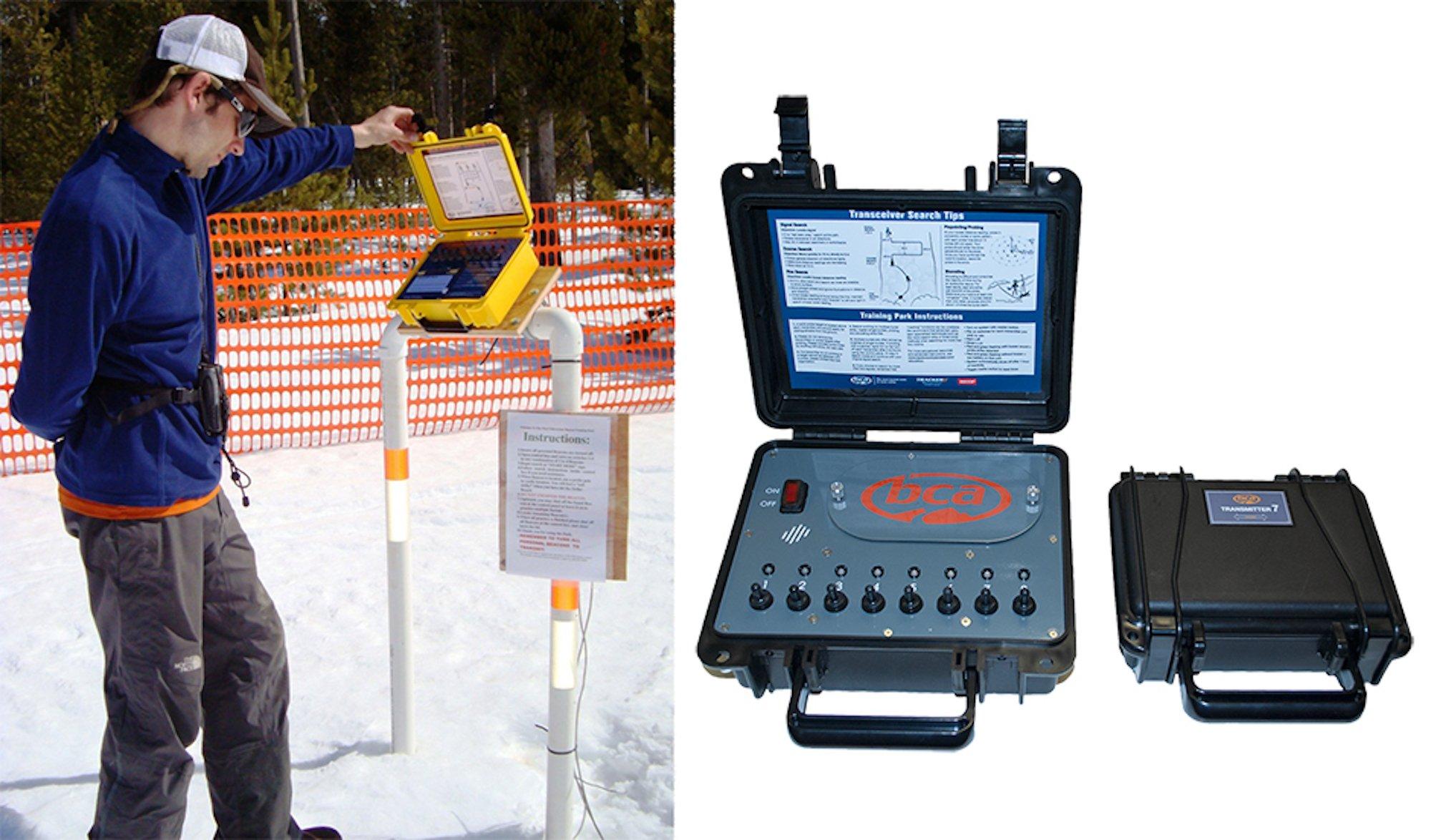 BCA offers a Wireless Beacon Training Park System that provides an easy and efficient way for recreationalists and pros to practice with their avalanche transceivers.  When fully set up, eight waterproofs transmit boxes are controlled wirelessly through a portable, weatherproof control panel. To change the search scenario, the controller simply flicks the on/off switch. Each transmit box comes with a 2 x 2 probe target, Recco diode, and motion sensor that emits an audible beep from the control panel when the target has been struck.
