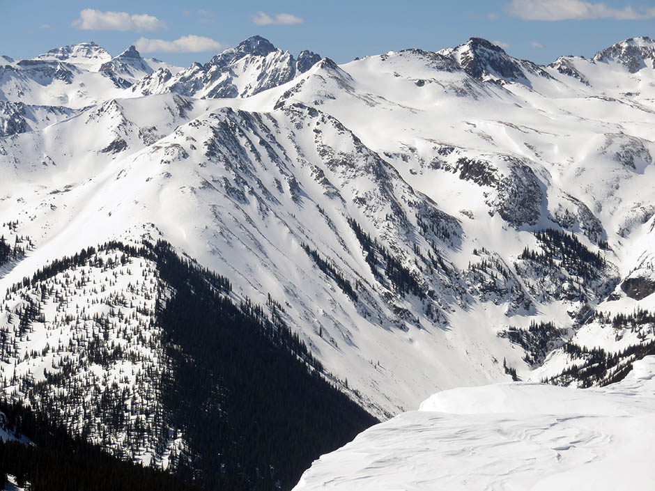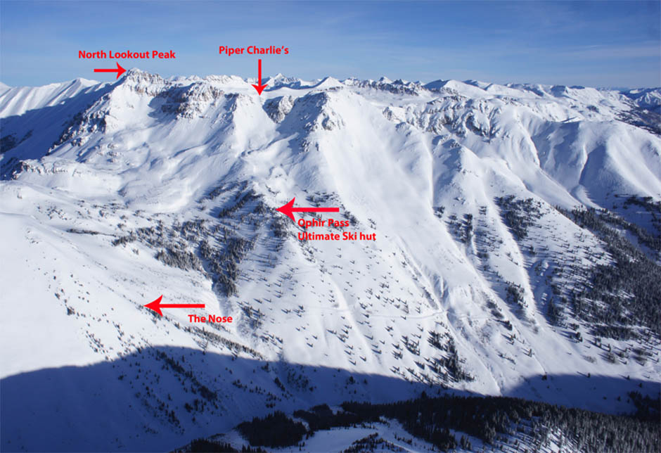 The same terrain as pictured in the CalTopo screenshot. These are the style of pictures from Silverton Off-Piste Ski Atlas. A good guidebook, combined with CalTopo and Google Earth is a valuable asset when planning a hut trip.